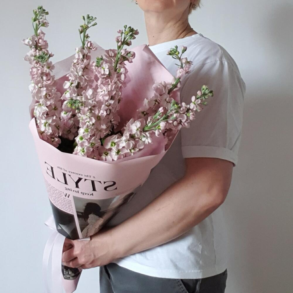 Упаковка – 2 шт.Лента атласная – 1 шт.Маттиола розовая – 9 шт.