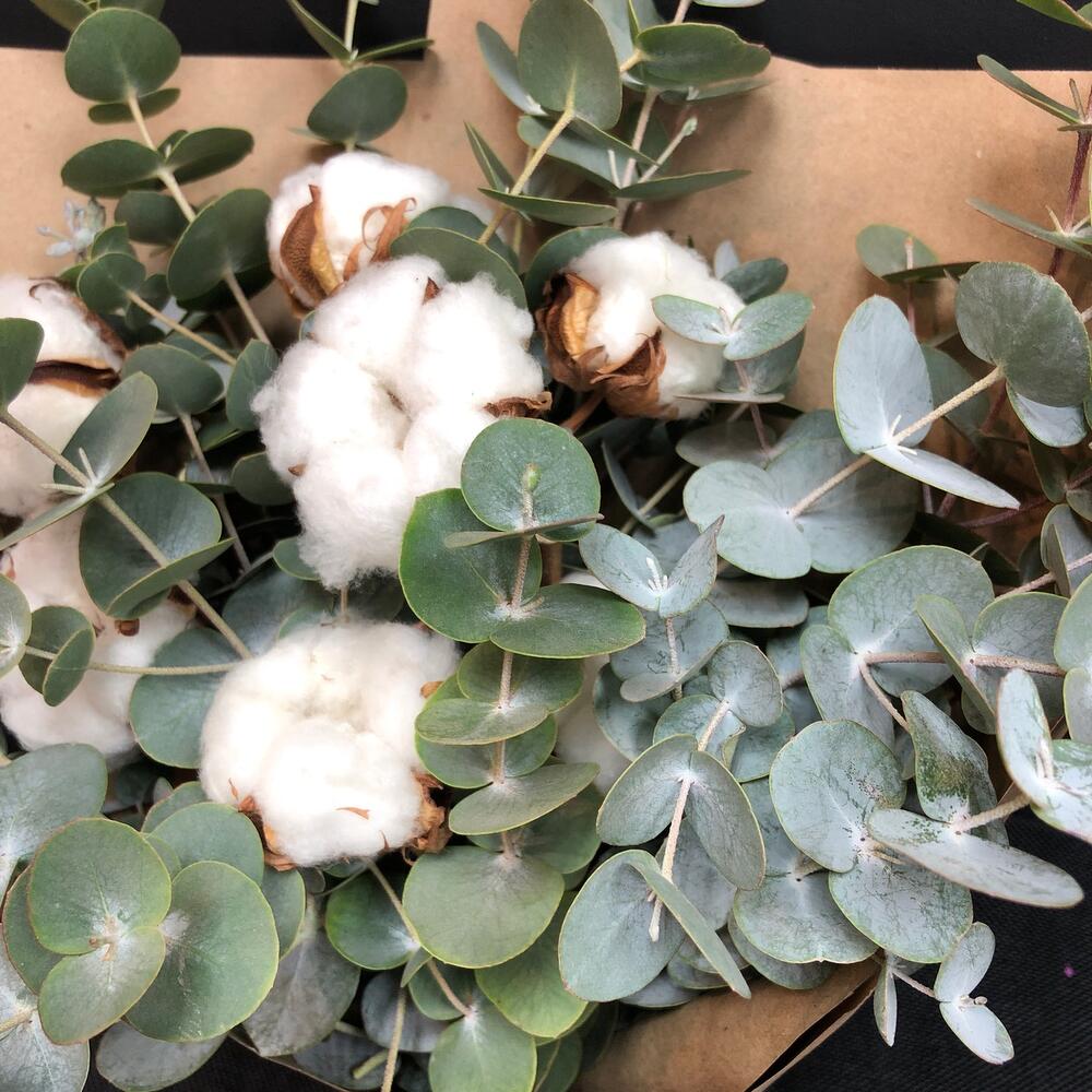 Букет из ароматного эвкалипта и белоснежного хлопка