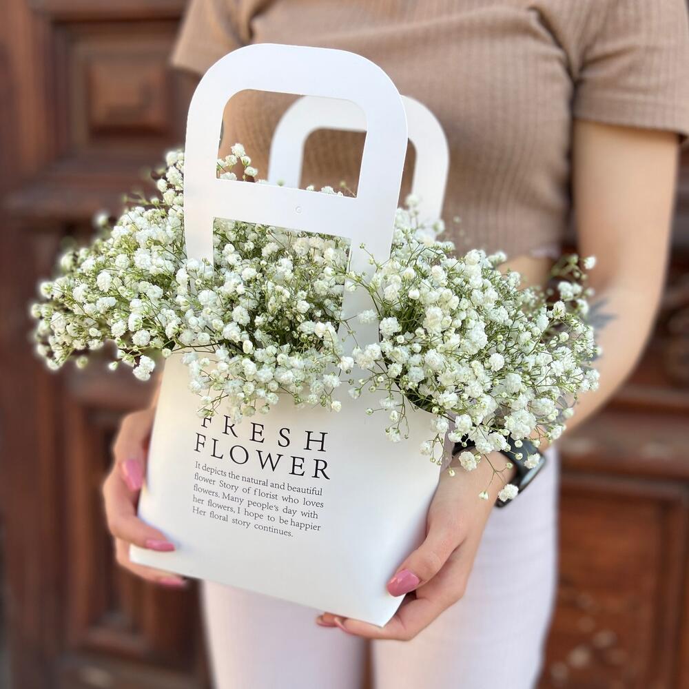 Гипсофила – 5 шт.Оазис флористический – 1 шт.Сумка крафт – 1 шт.