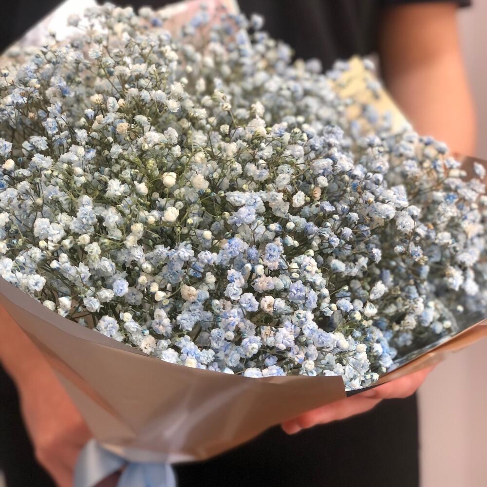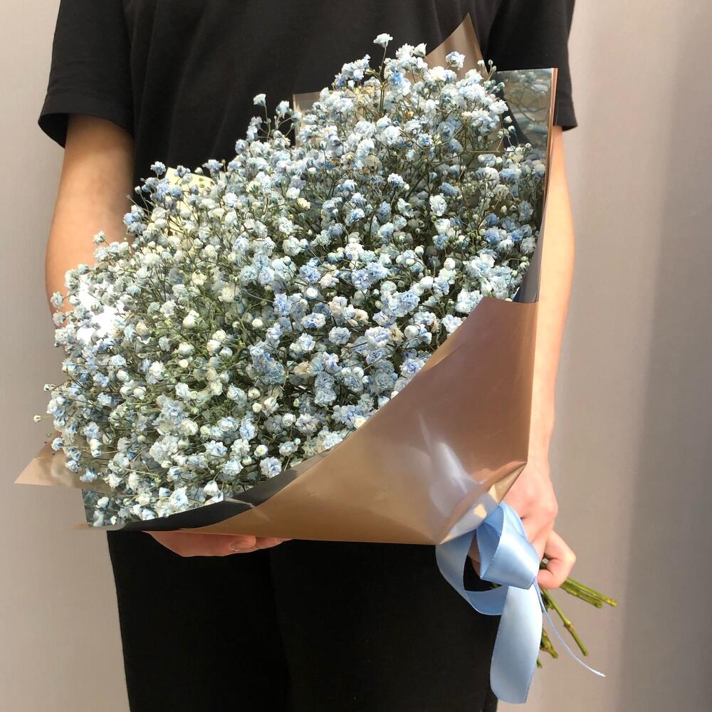 Гипсофила – 9 шт.Упаковка дизайнерская – 1 шт.Лента атласная – 1 шт.
