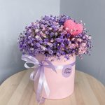 Цветная гипсофила в шляпной коробке