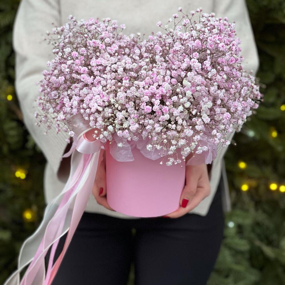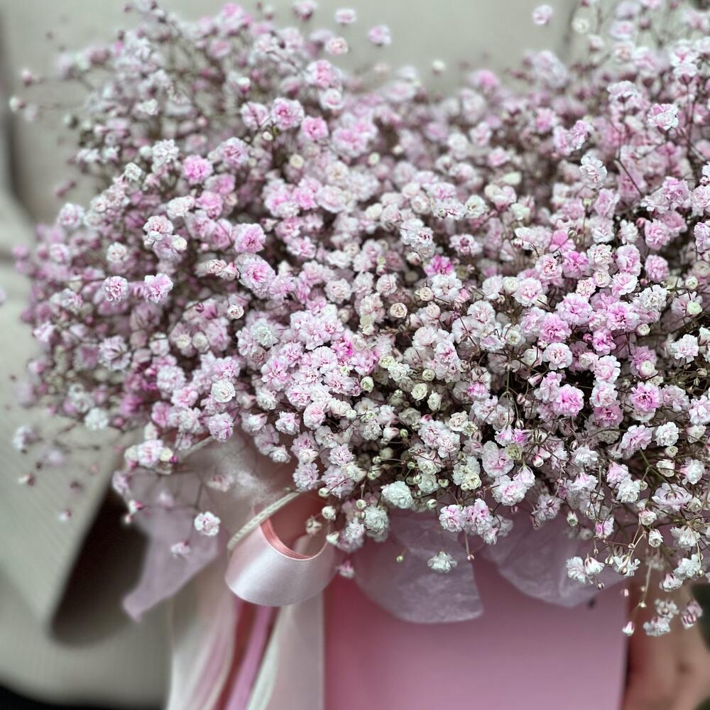 Гипсофила – 8 шт.Коробка – 1 шт.Оазис флористический – 1 шт.Тишью – 1 шт.Лента атласная – 1 шт.