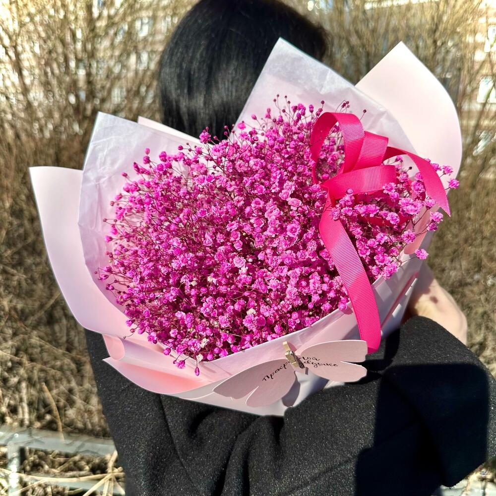 Розовый букет из гипсофилы «Принцесса»