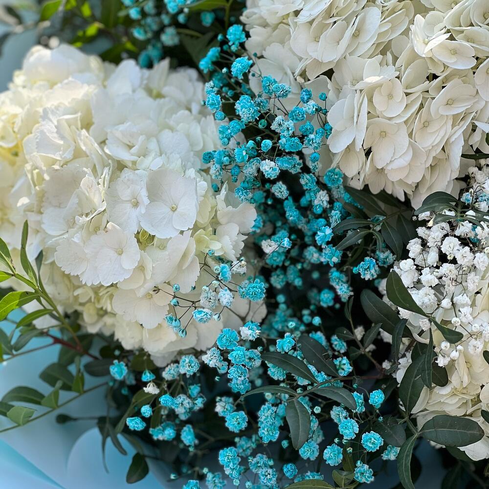 Роскошный объемный букет из Гортензии с гипсофилой и зеленью в стильном оформлении порадует ваших близких ‼️