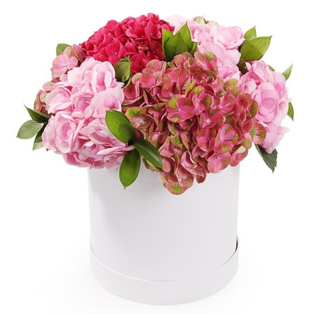 Гортензия – 5 шт.Шляпная коробка – 1 шт.Оазис флористический – 1 шт.