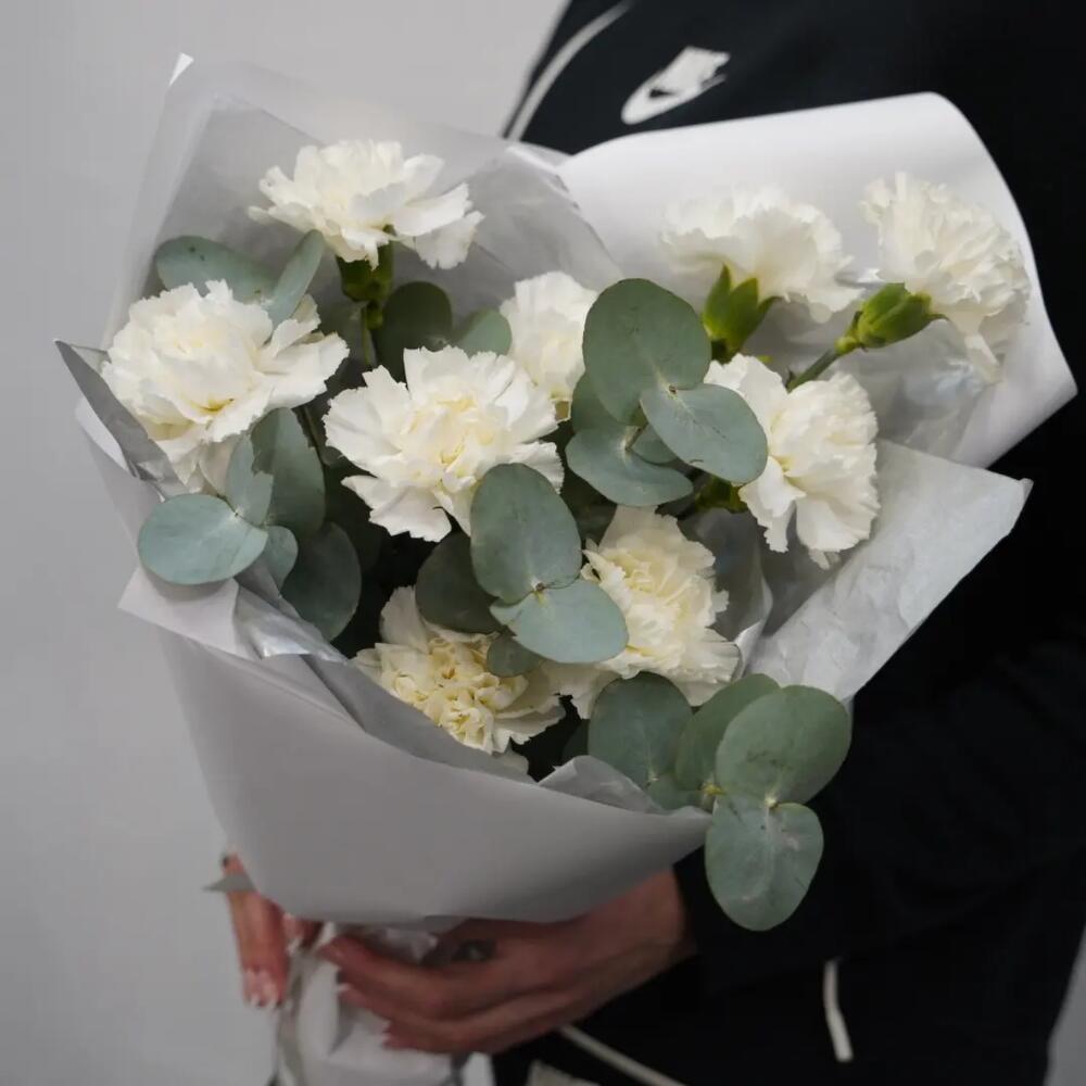 Эвкалипт – 1 шт. Гвоздика – 9 шт. Оформление – 1 шт.