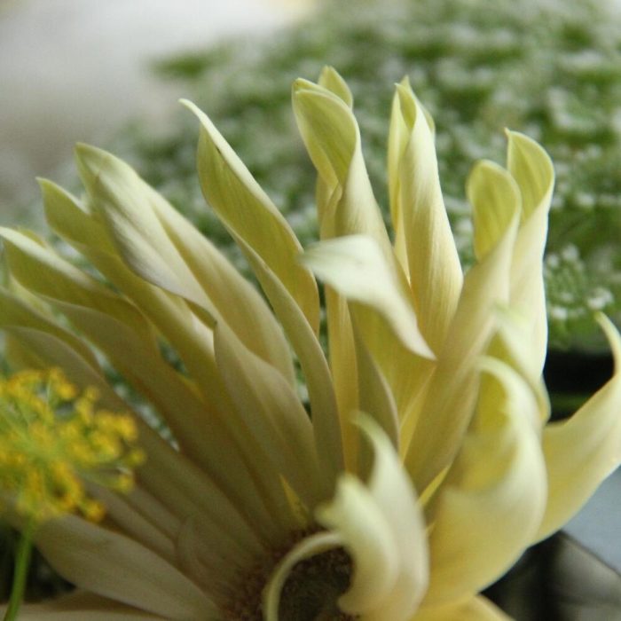 гербера кучерявая – 5 шт.Ранункулюс – 5 шт.Амми – 3 шт.Маттиола – 3 шт.Нарцисс – 2 шт.Лизиантус – 3 шт.Гвоздика – 6 шт.Гринбелл – 2 шт.Эвкалипт – 5 шт.Фисташка – 2 шт.Оазис флористический – 1 шт.Коробка шляпная – 1 шт.