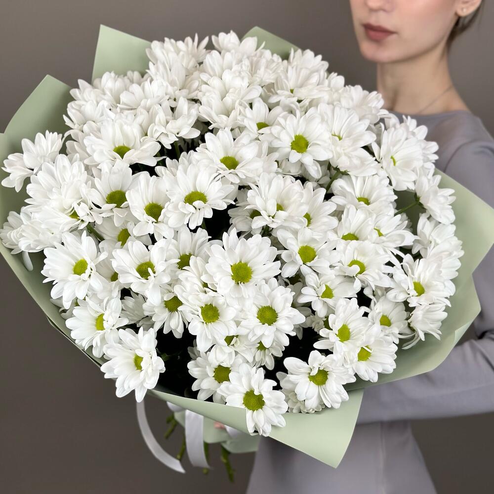 Букет хризантем (ромашковидных) с салалом, 5 шт
