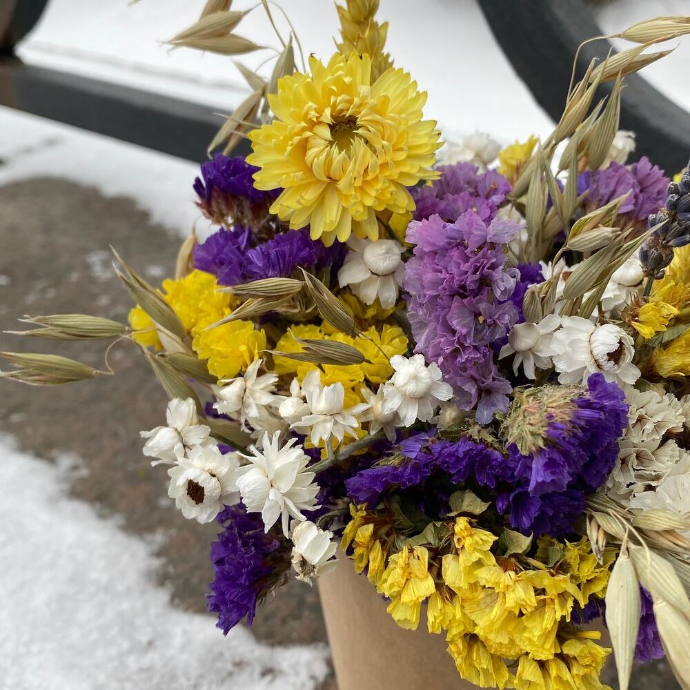 гелихризум (сухоцвет) – 1 шт.злаки микс – 10 шт.акроклинум – 5 шт.Статица – 10 шт.