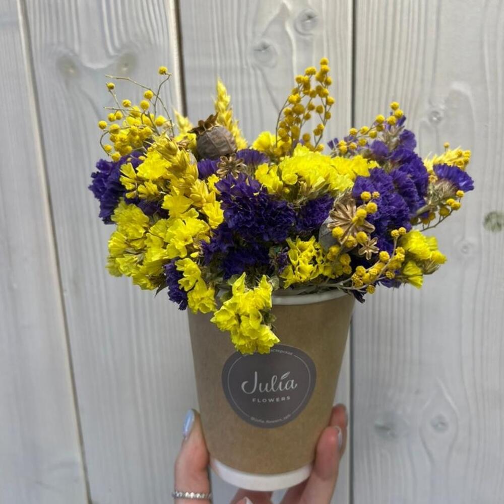 Композиция из сухоцветов в крафтовом стаканчике
