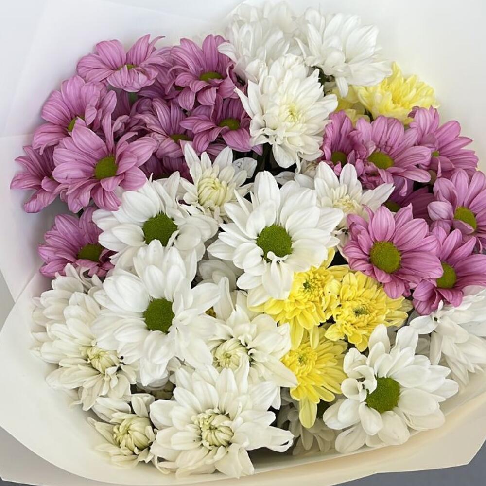 15 кустовых хризантем с зеленью