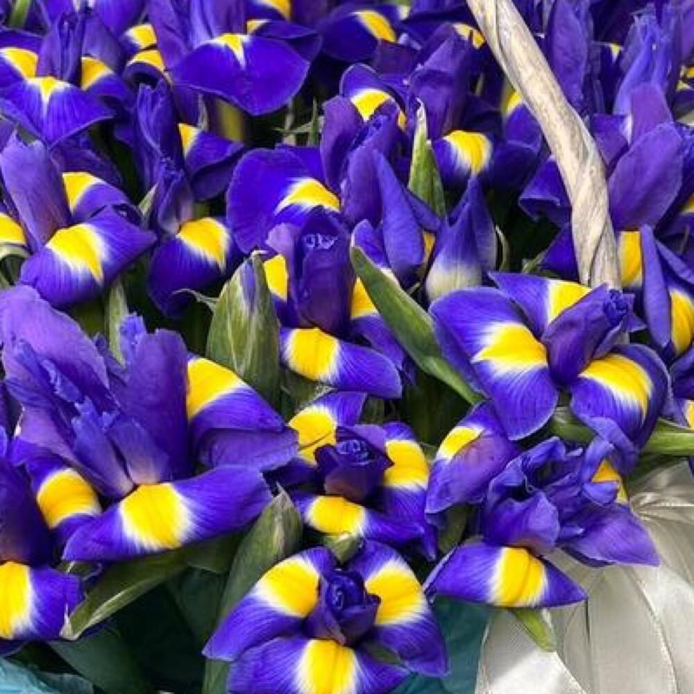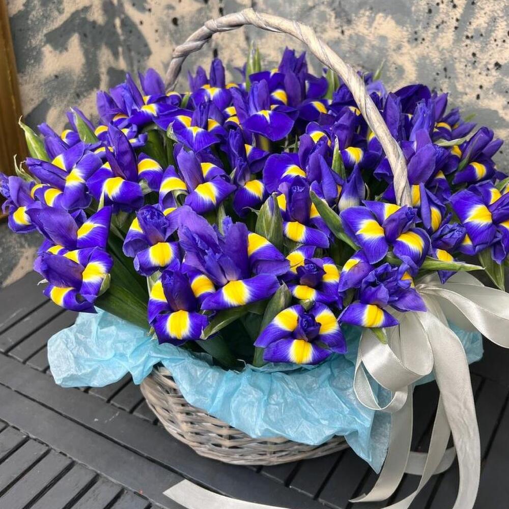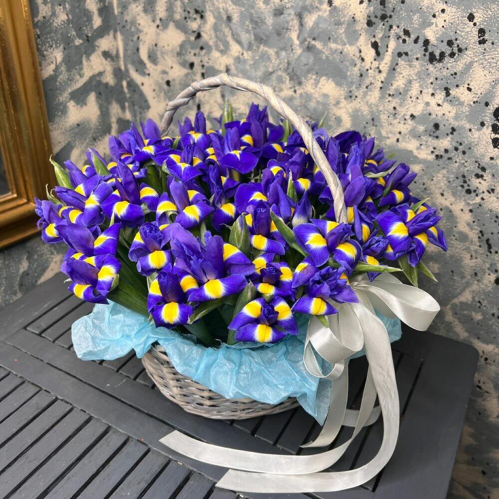 Корзина с синими ирисами