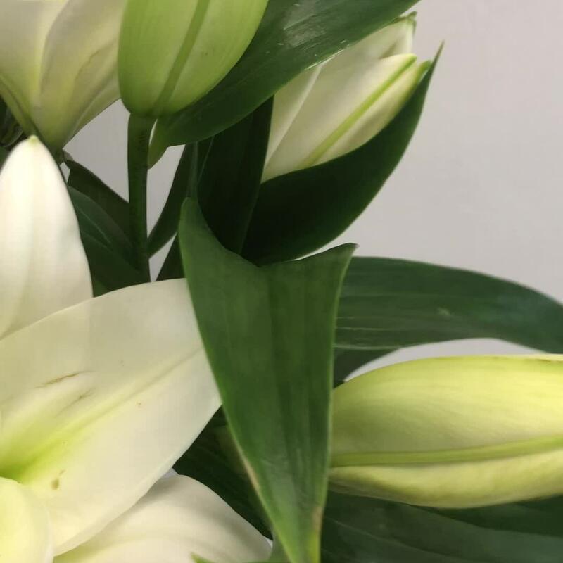 Лента атласная – 1 шт.Лилия белая – 5 шт.
