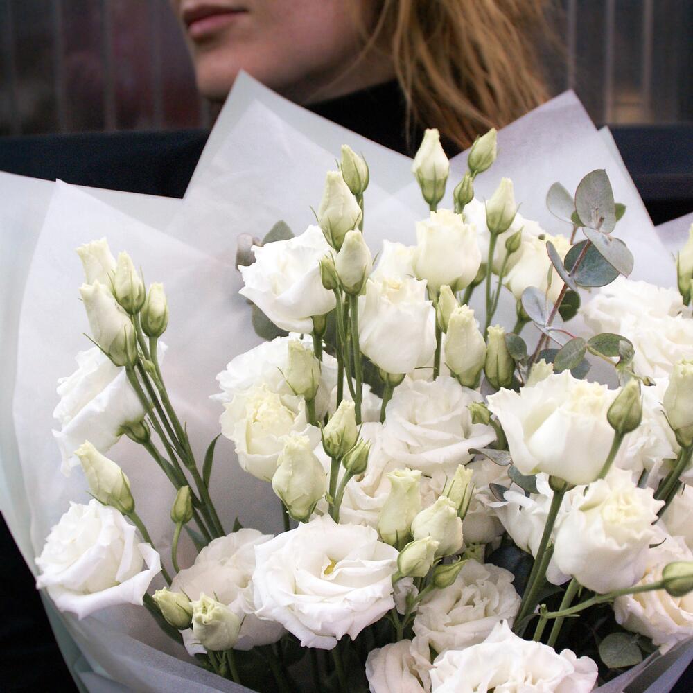Букет из 9 эустом с эвкалиптом