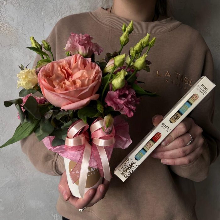 Цветочный комплимент с шоколадом “Счастье”