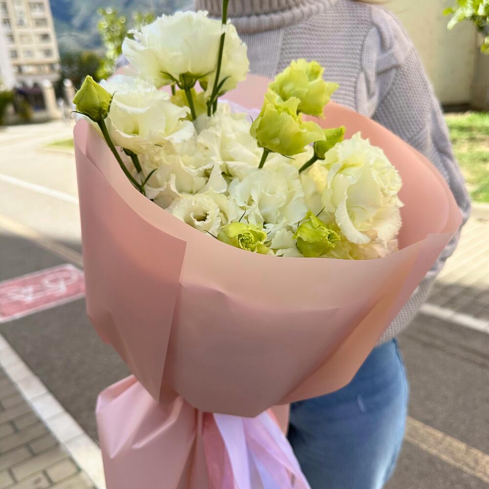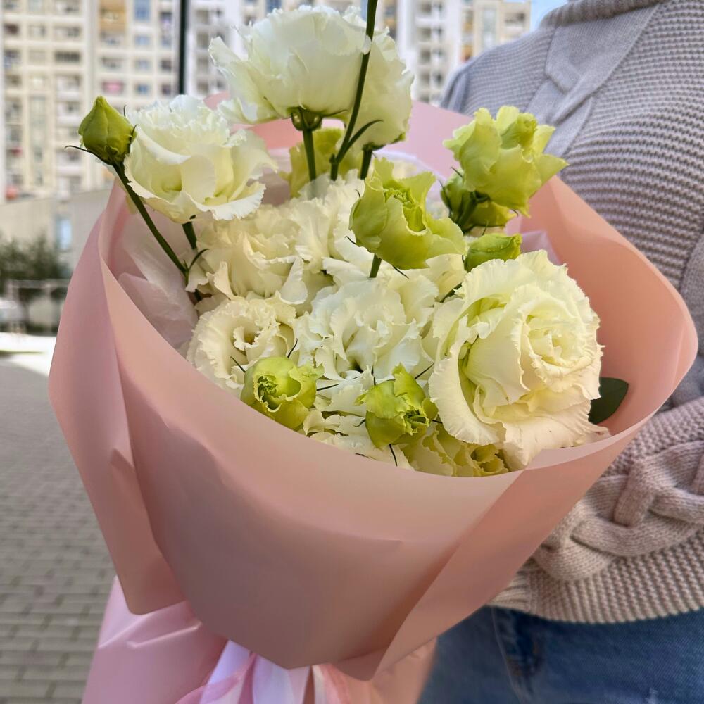 Букет из 9 веток белой эустомы. Этот букет обладает невероятной красотой и излучает нежность.