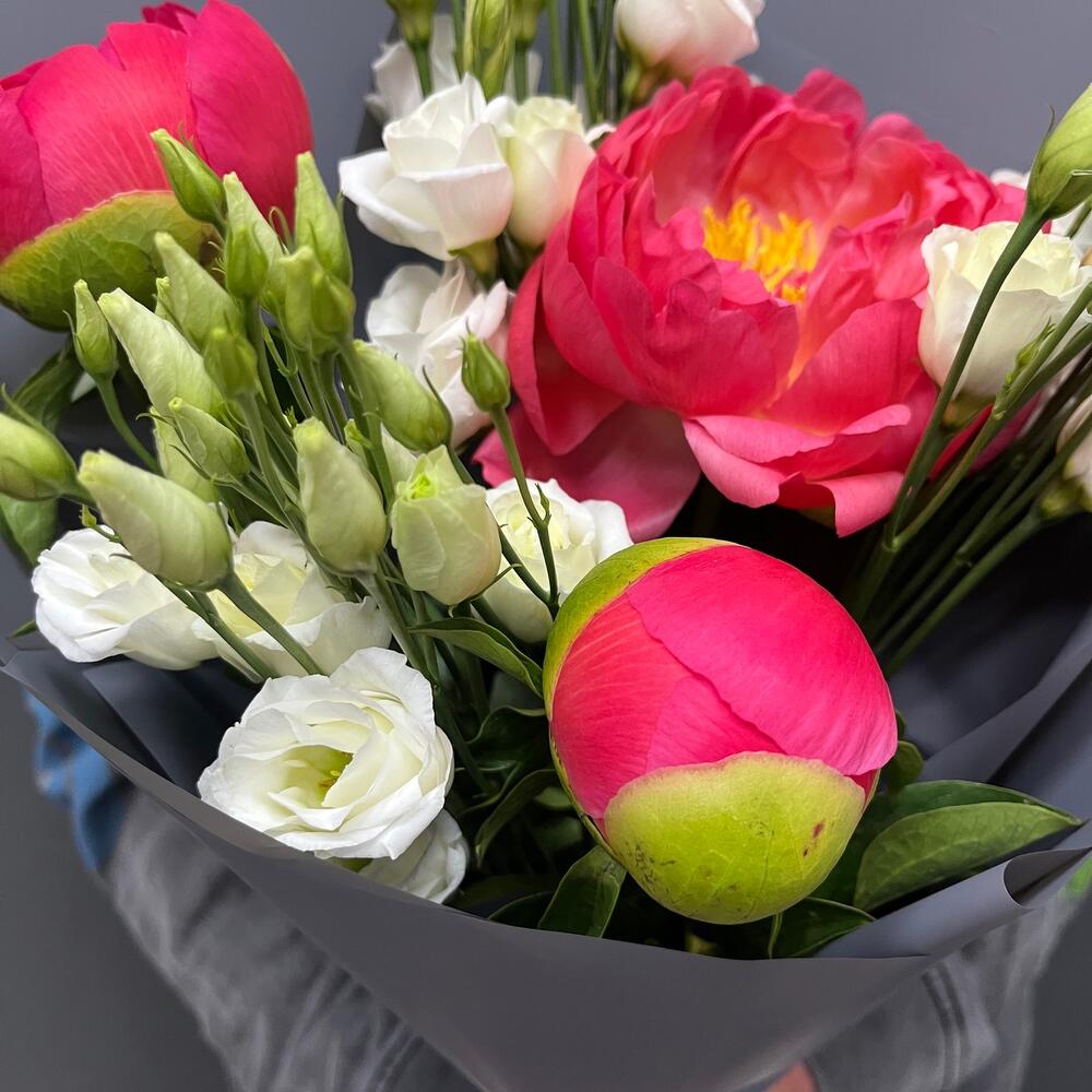 ВЕСНА В ПЕТЕРБУРГЕ премиум букет из пионов и эустомы