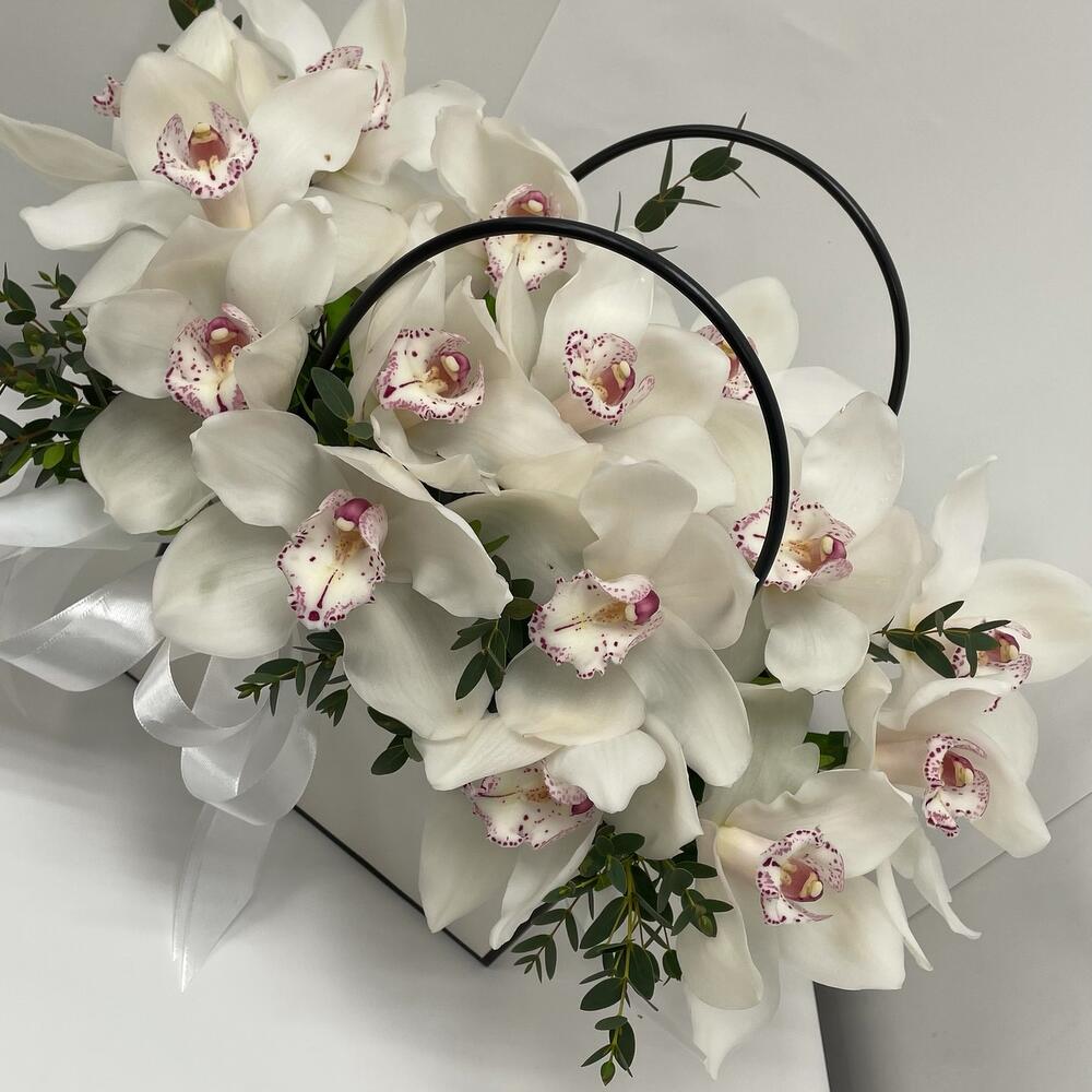 Писташ – 2 шт.Сумочка – 1 шт.Орхидея белая – 15 шт.Оазис флористический – 1 шт.
