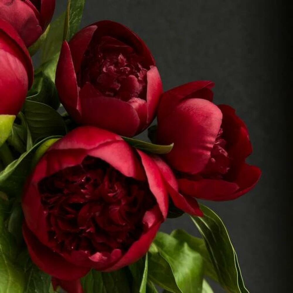 Атласная лента – 1 шт.пионы red charm – 5 шт.