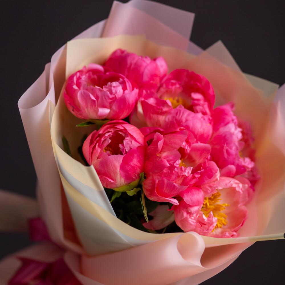 Букет из 7 коралловых пионов