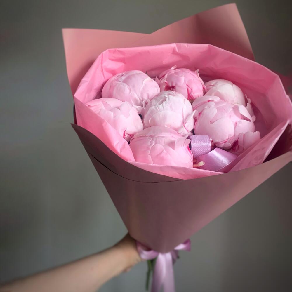 Лента – 3 шт.Упаковка дизайнерская – 4 шт.пион рене хортенс – 7 шт.