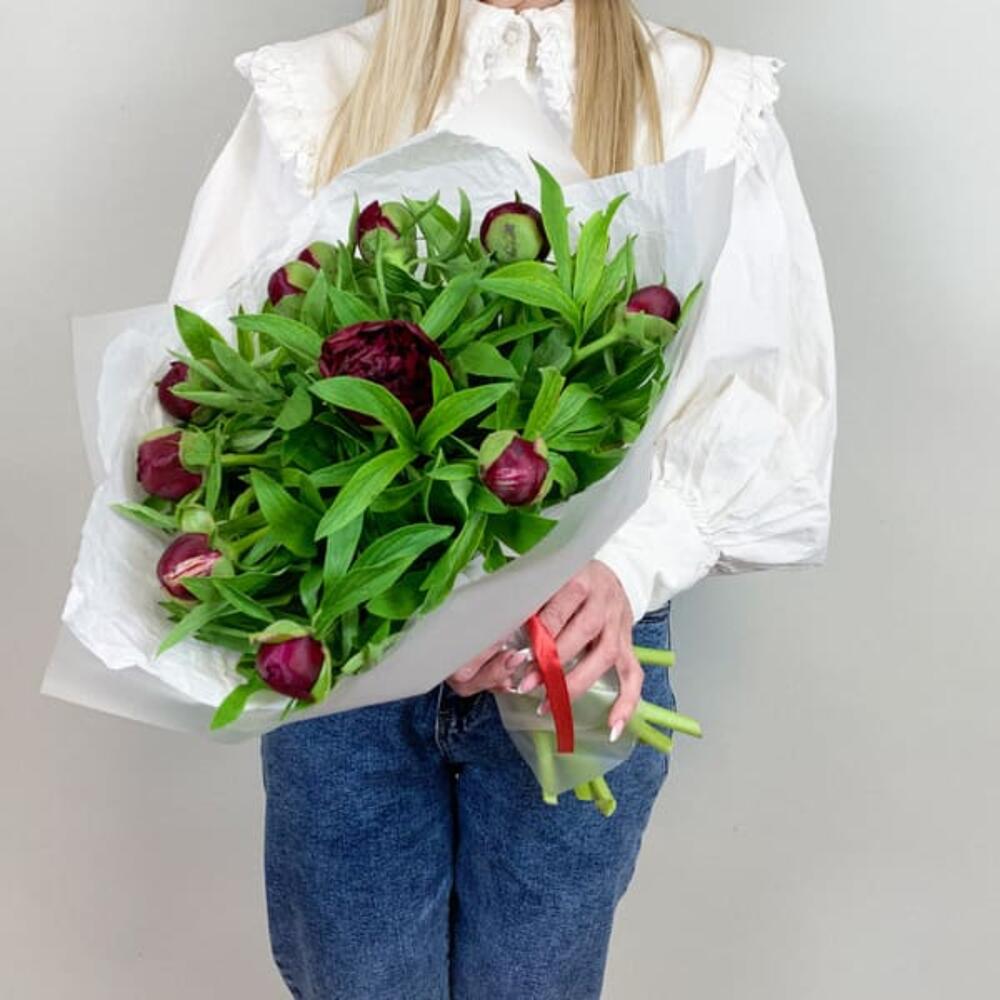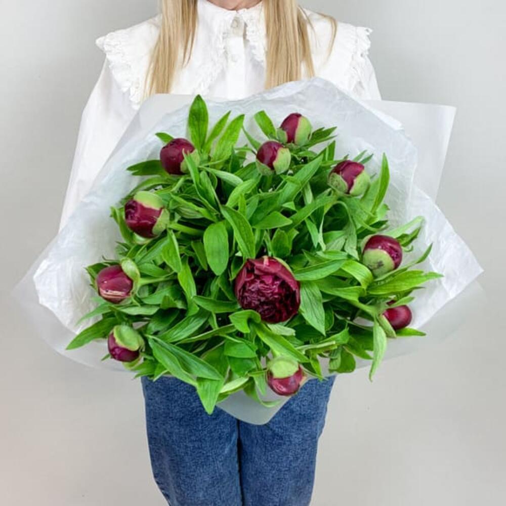 Букет из бордовых пионов Standart 11 шт