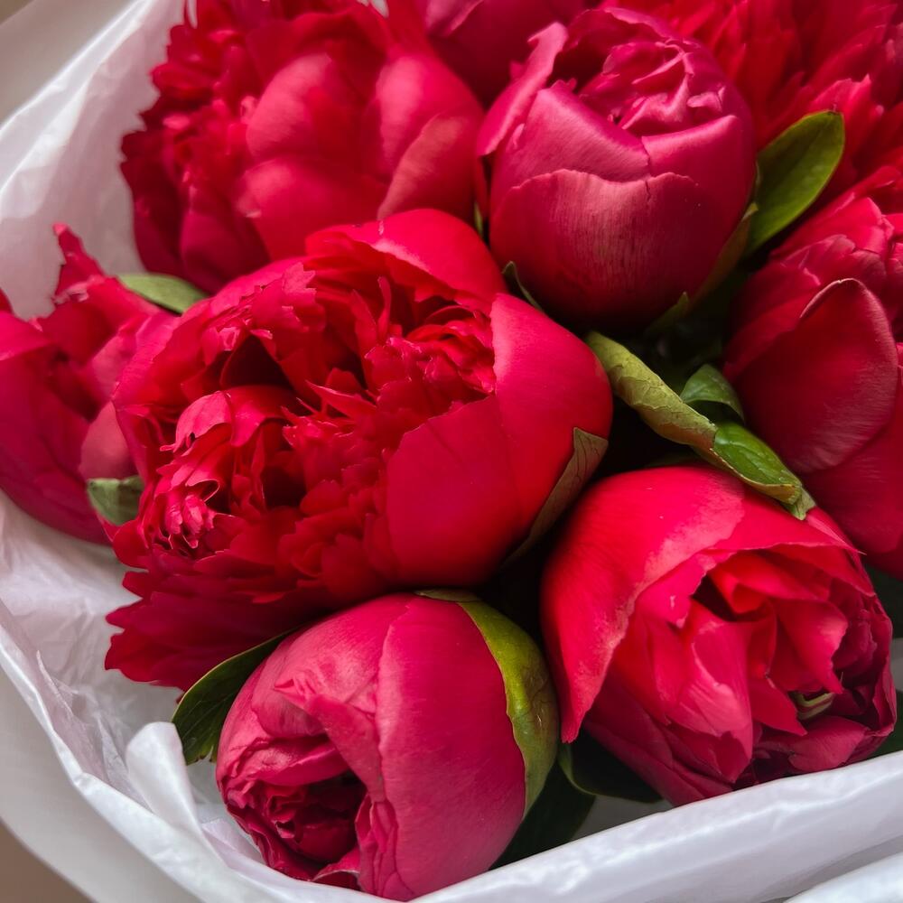 Лента атласная – 1 шт.Тишью – 3 шт.Пленка матовая – 1 шт.пион белгравия – 9 шт.