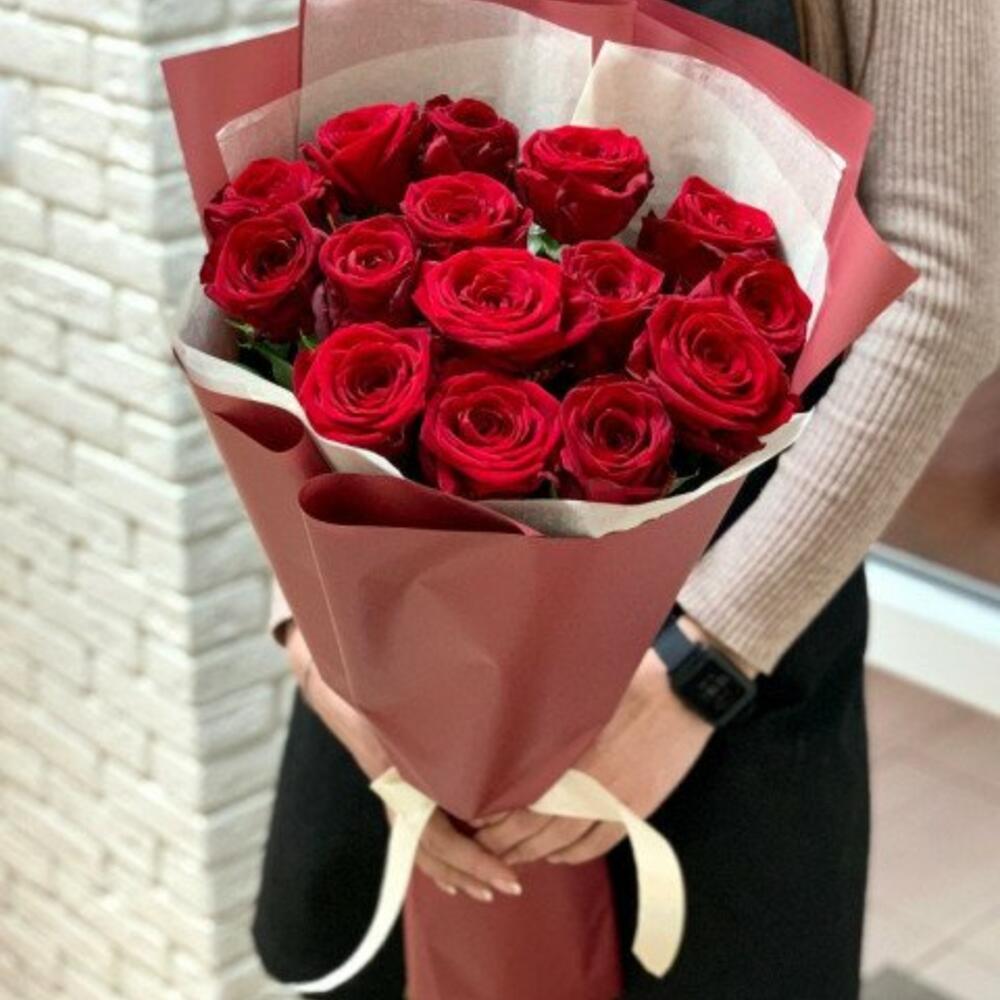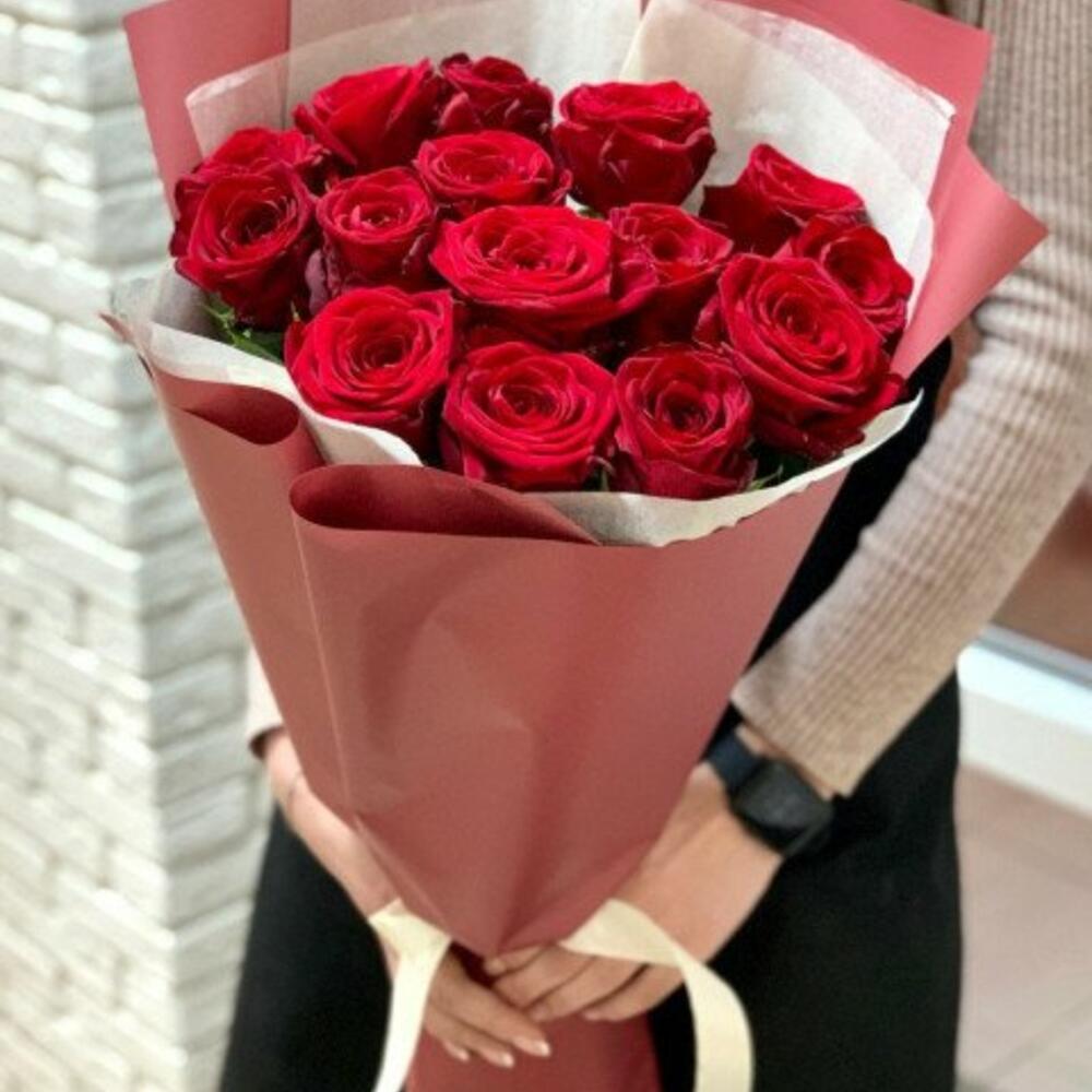 Метки: 15 роз, Красные розы, от 2000 до 3000 руб, Роза 70 см
