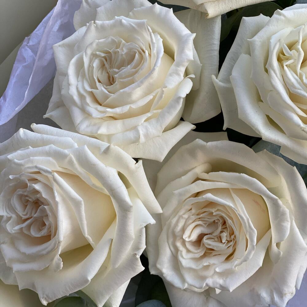 5 белых пионовидных роз