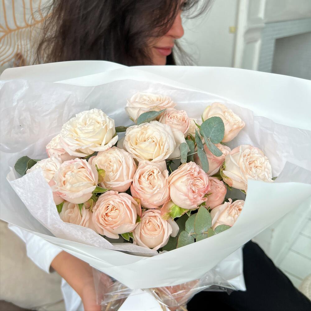 Эвкалипт – 3 шт.Кустовая пионовидная роза Бомбастик – 5 шт.