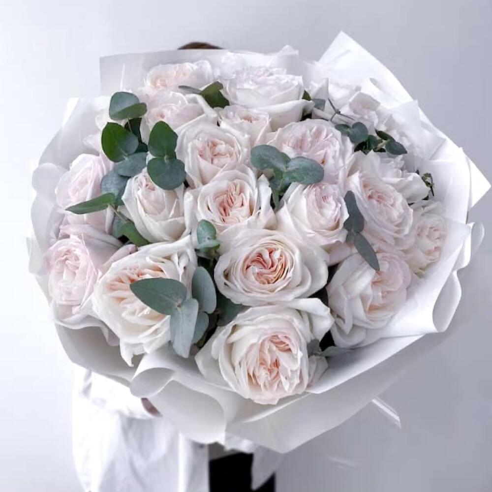 Эвкалипт – 2 шт.Упаковка дизайнерская – 2 шт.роза вайт о хара( ароматная) – 25 шт.