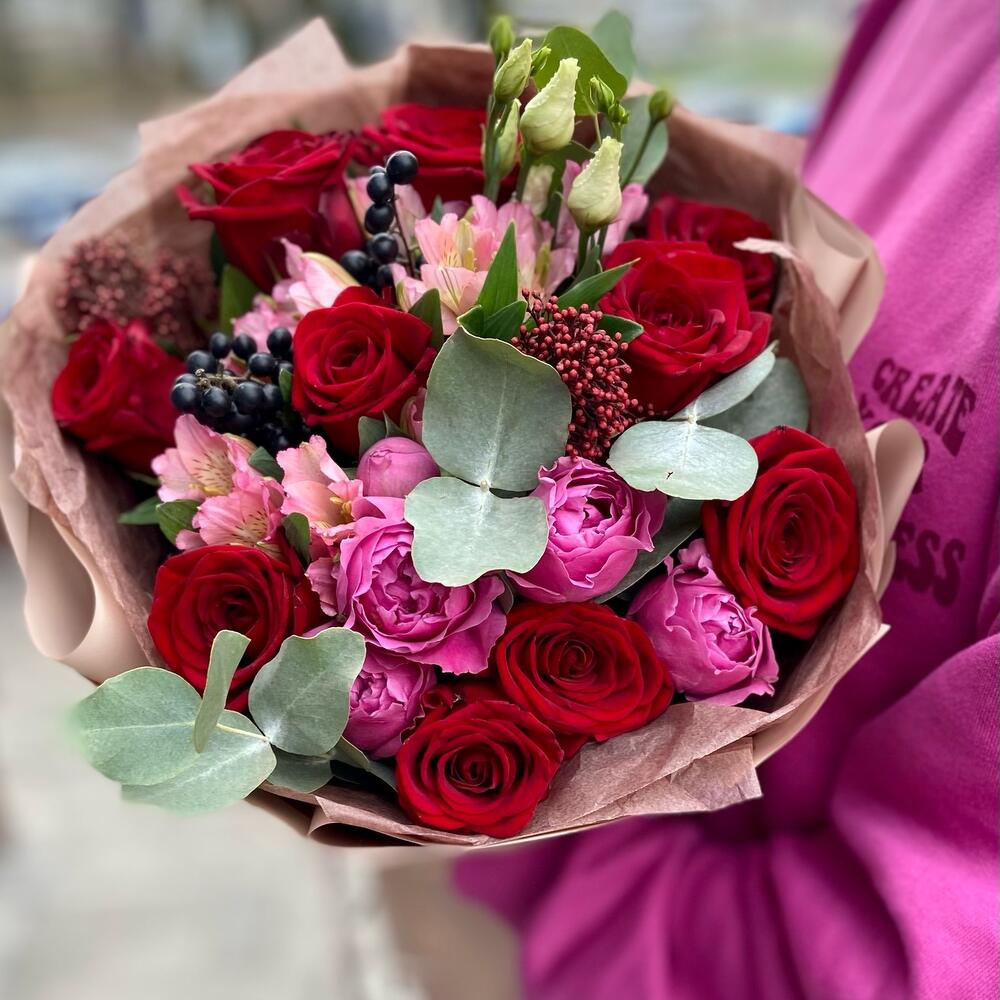 Кустовые розы, Лизиантусы, Пионы, Розы, Хризантемы