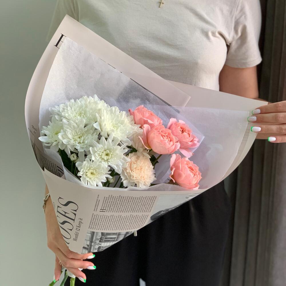 Гвоздики, Кустовые розы, Лизиантусы, Пионовидные розы, Розы