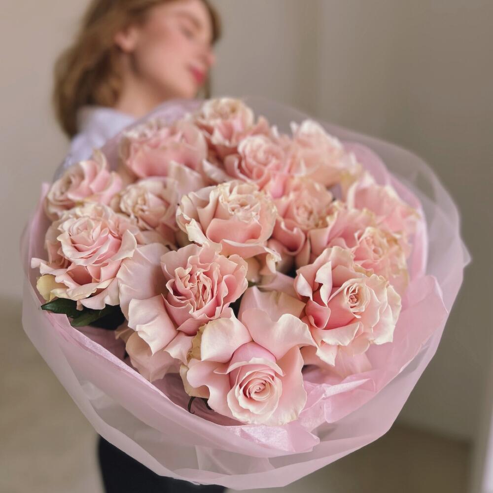 Букет из 15 французских роз "PINK MONDIAL"