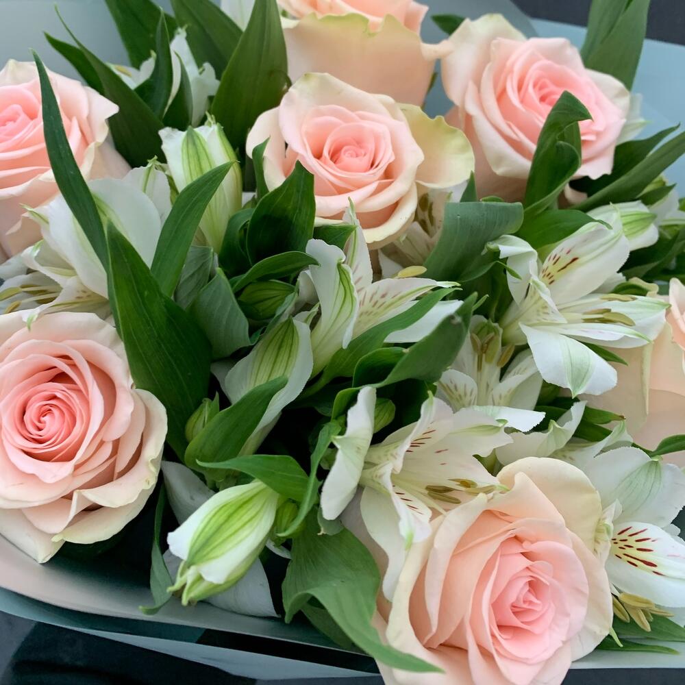 Роза – 7 шт.Альстромерия – 8 шт.Упаковка дизайнерская – 1 шт.
