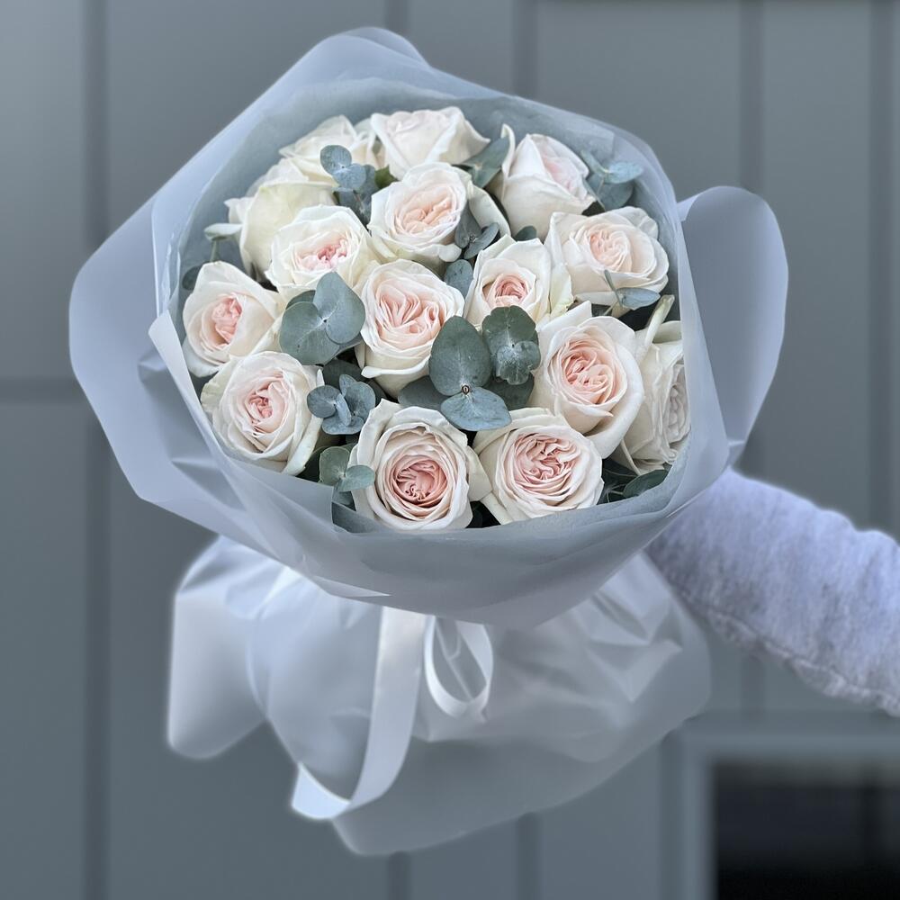 Эвкалипт – 1 шт. Оформление – 1 шт. роза ohara – 15 шт.