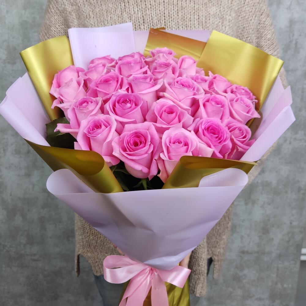 Упаковка дизайнерская – 1 шт.розовые розы – 25 шт.