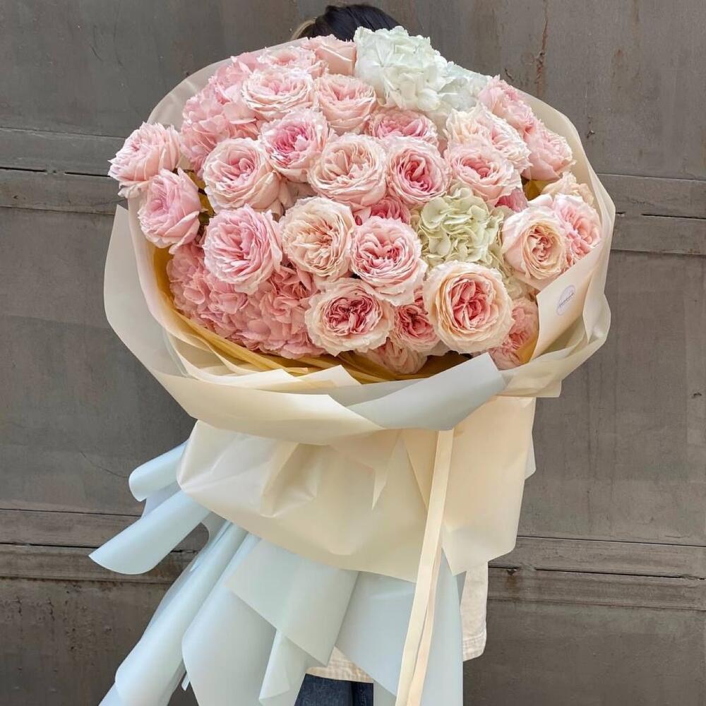 Гортензии, Кустовые розы, Лизиантусы, Пионовидные розы, Розы