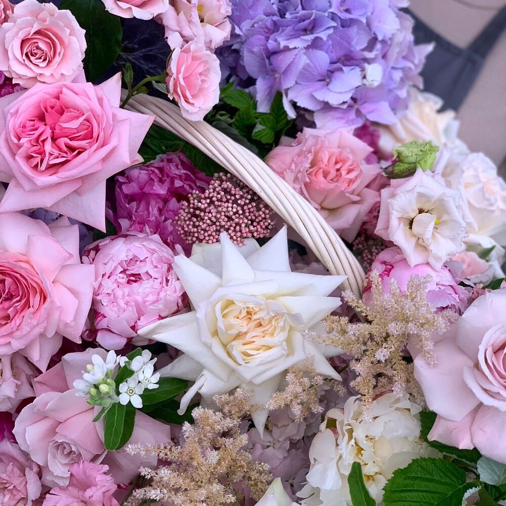 Гвоздики, Кустовые розы, Лизиантусы, Пионовидные розы, Розы