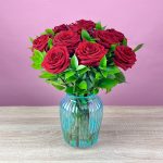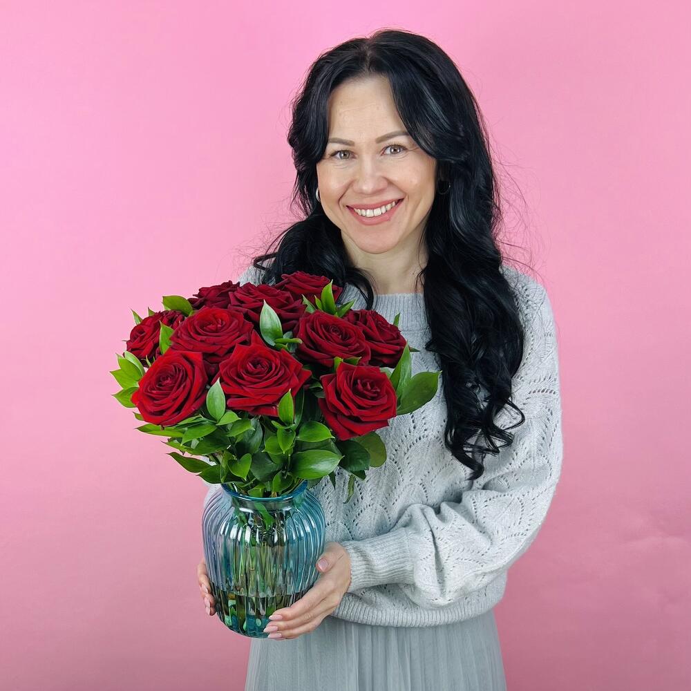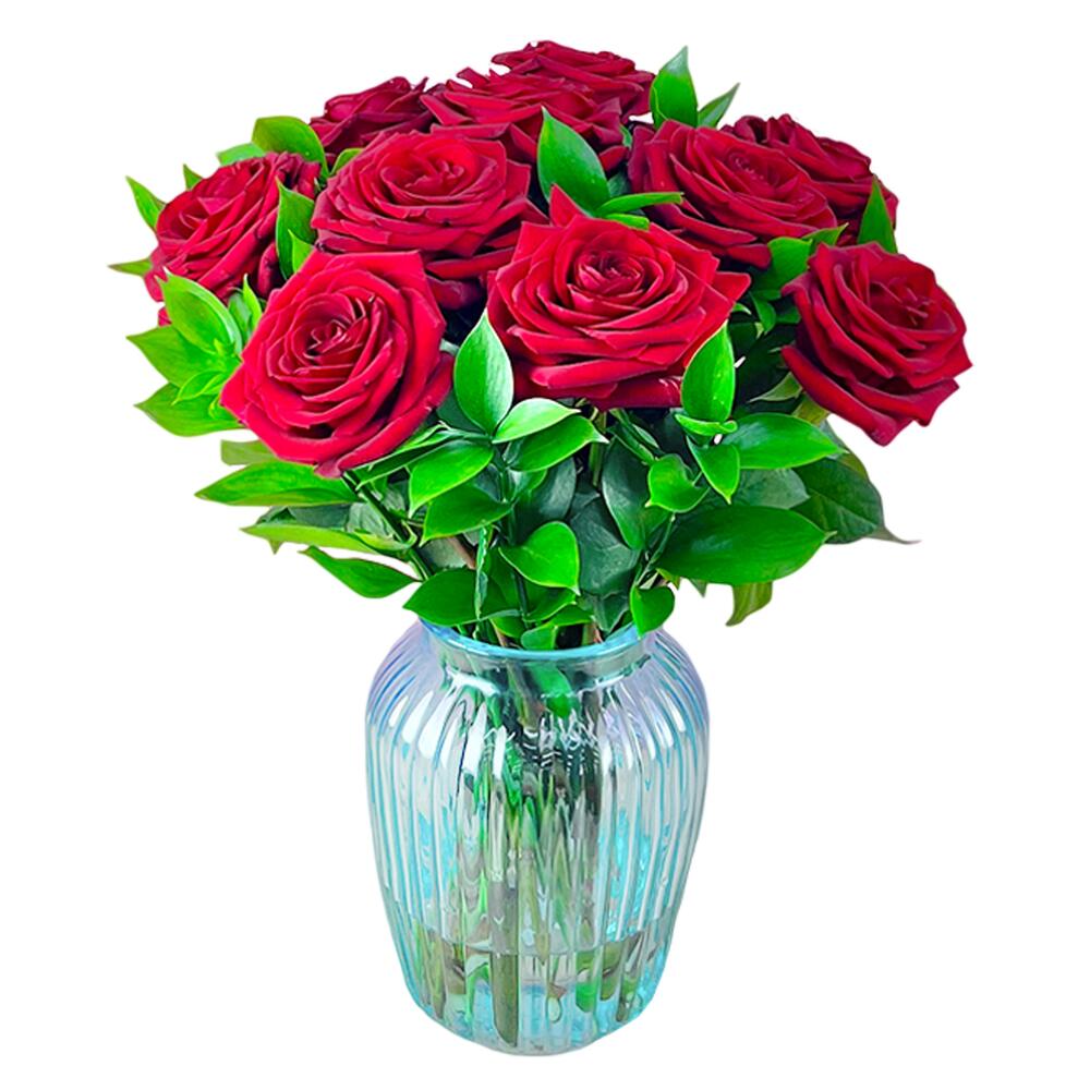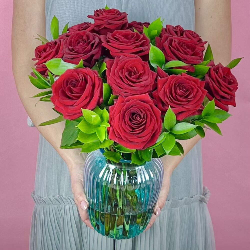Салал – 10 шт.Ваза – 1 шт.роза одноголовая (красный) – 15 шт.