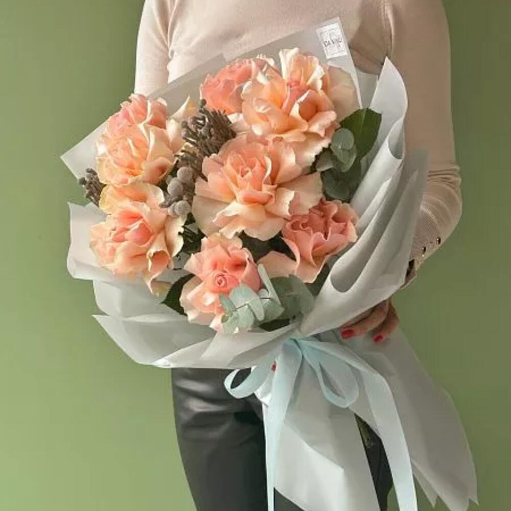 Кустовые розы, Лизиантусы, Розы, Сухоцвет