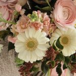 Ранункулюс – 3 шт.Роза сортовая – 5 шт.Гербера – 4 шт.Нарцисс кустовой – 3 шт.Маттиола – 3 шт.вибурнум цветущий – 5 шт.Лента атласная – 1 шт.