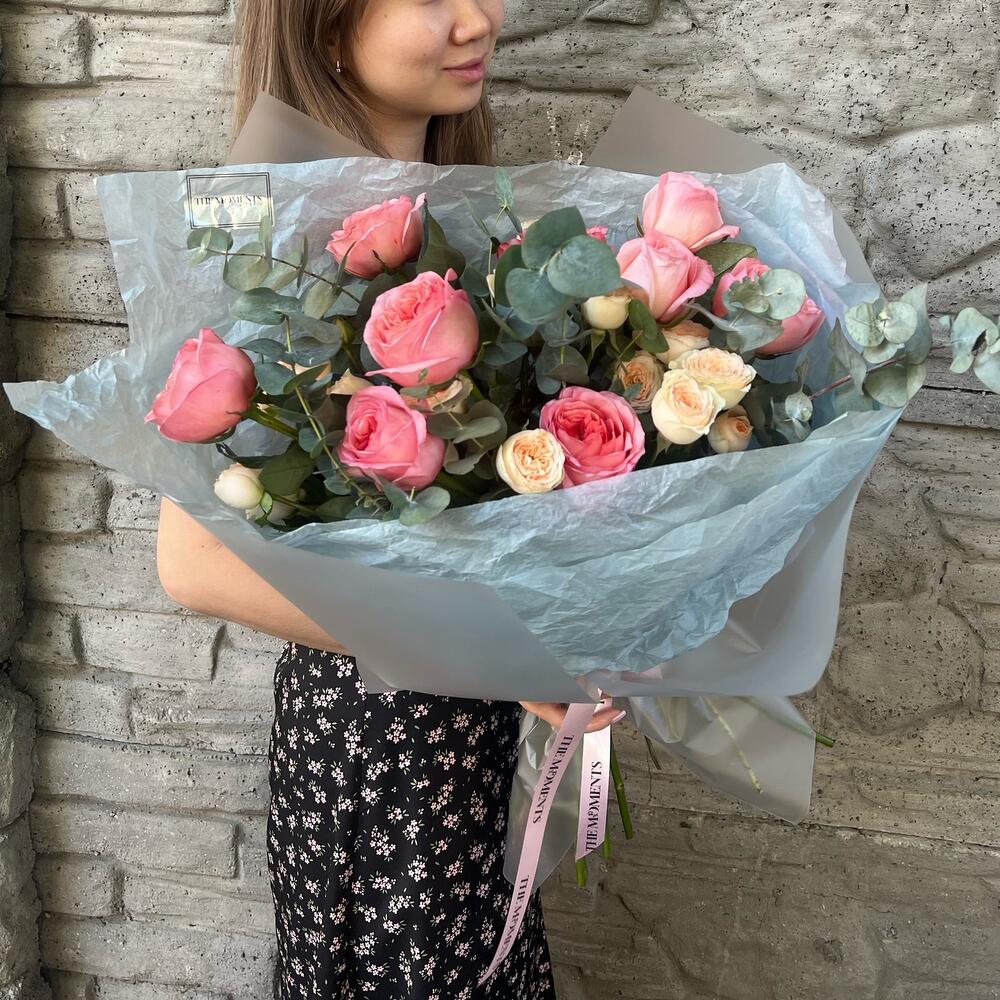 Гвоздики, Кустовые розы, Лизиантусы, Пионовидные розы, Розы