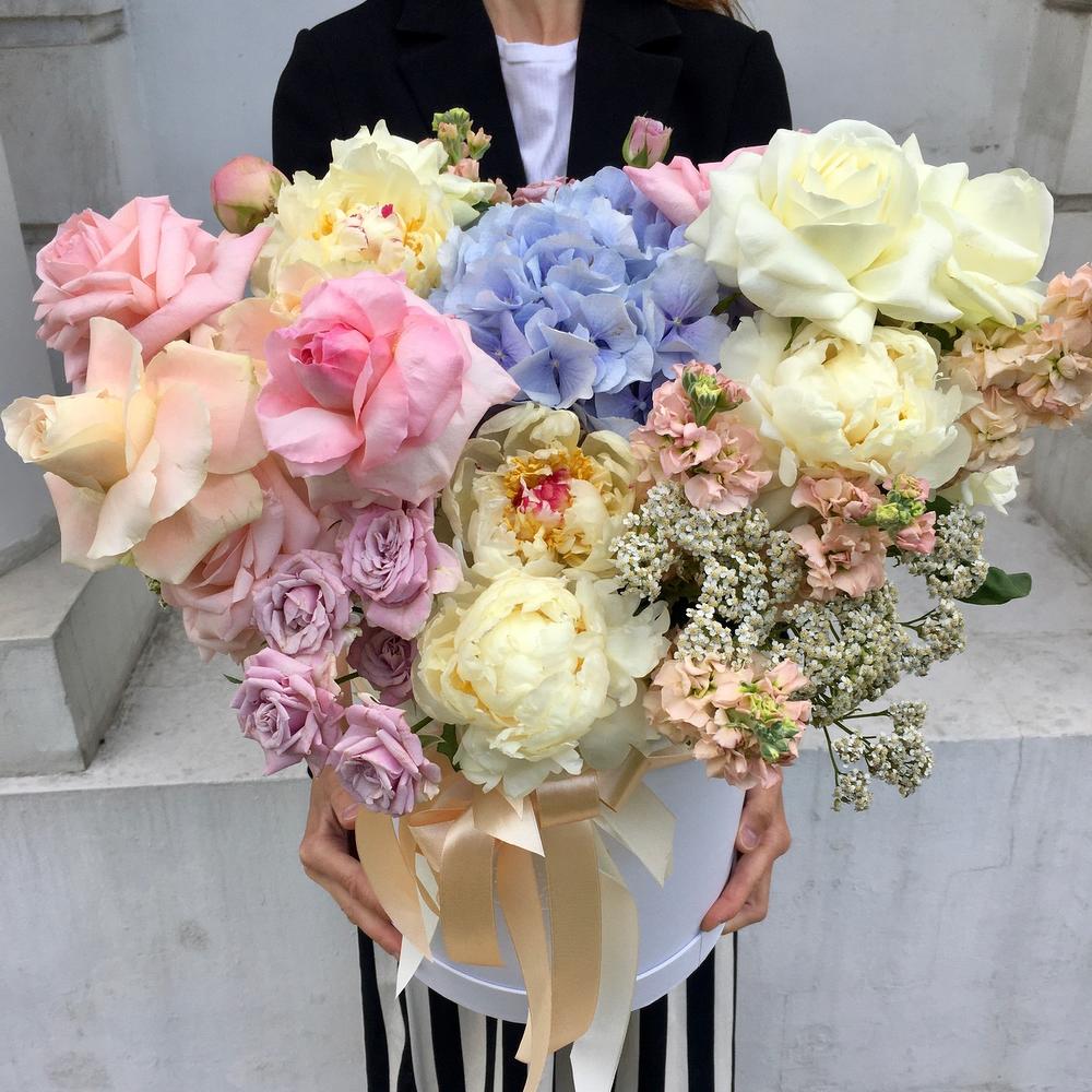 Кустовые розы, Лизиантусы, Пионы, Розы, Хризантемы