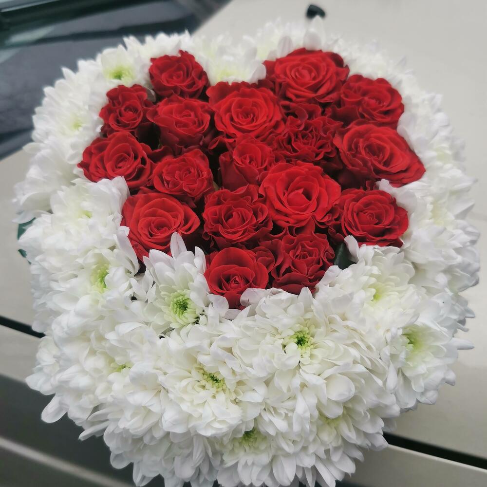 Сердце из роз и хризантем