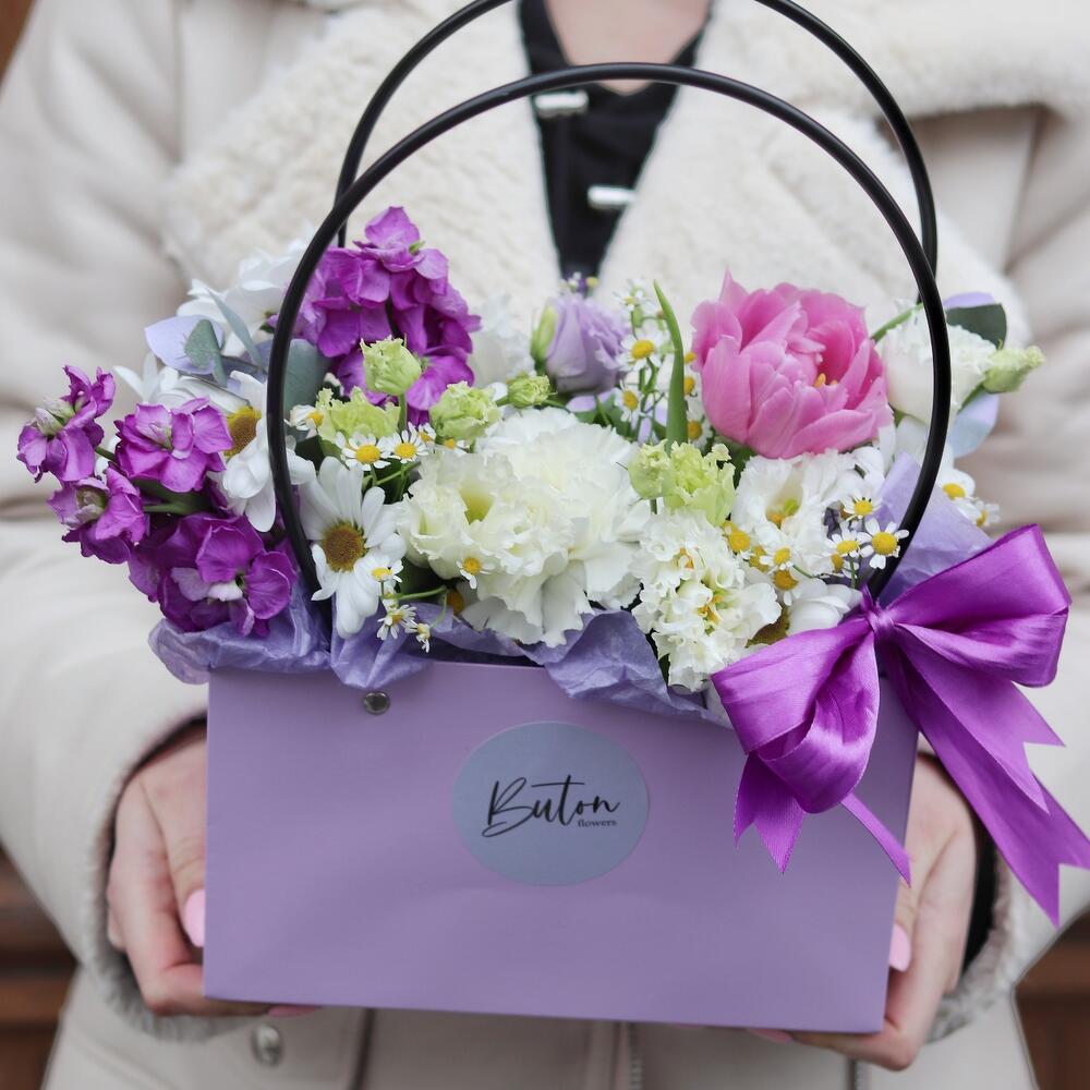 Нежная композиция с тёплым, весенним настроением Сиренево-розовая гамма – идеальный и всеми любимый вариант подарочного букета, который будет очень долго радовать свою получательницу.В подарок к букету шоколадка для прекрасной получательницыМы также можем отправить вместе с букетом конфеты, шоколад ручной работы или б/а вино по вашим пожеланиям, просто напишите нам в личные сообщения Предоставляем исключительный сервис и заботу о клиенте