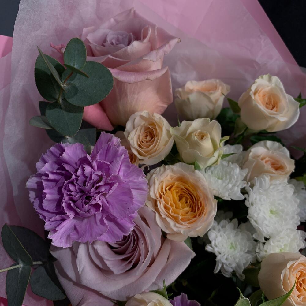 Альстромерии, Кустовые розы, Лизиантусы, Пионовидные розы, Розы, Ромашки