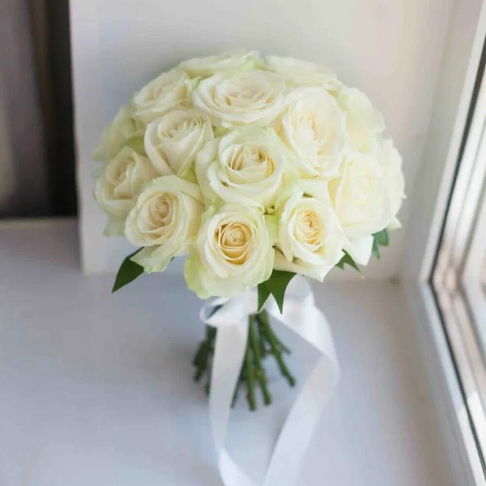 Нежный букет невесты из Роз доступен к заказу в нашем интернет-магазине Цвет можно заменить!(Пожелание пишите в чат) В подарок к букету- лента!❗️Обратите внимание❗️Другая подарочная упаковка, открытки, топперы и праздничные аксессуары доступны в доп.товарах!✅ Наш интернет-магазин на рынке уже более 8 лет!✅ Свежие цветы 3 раза в неделю!✅ Быстрая доставка в день заказа!