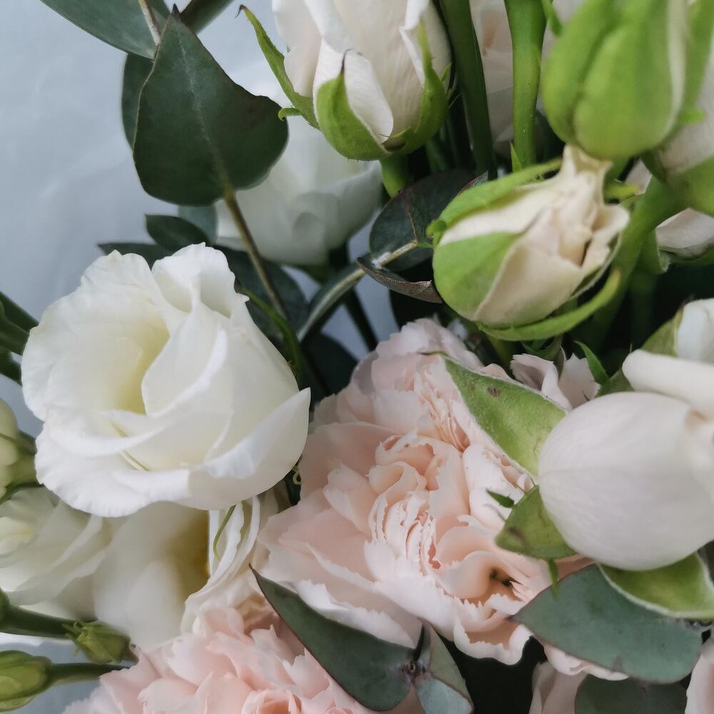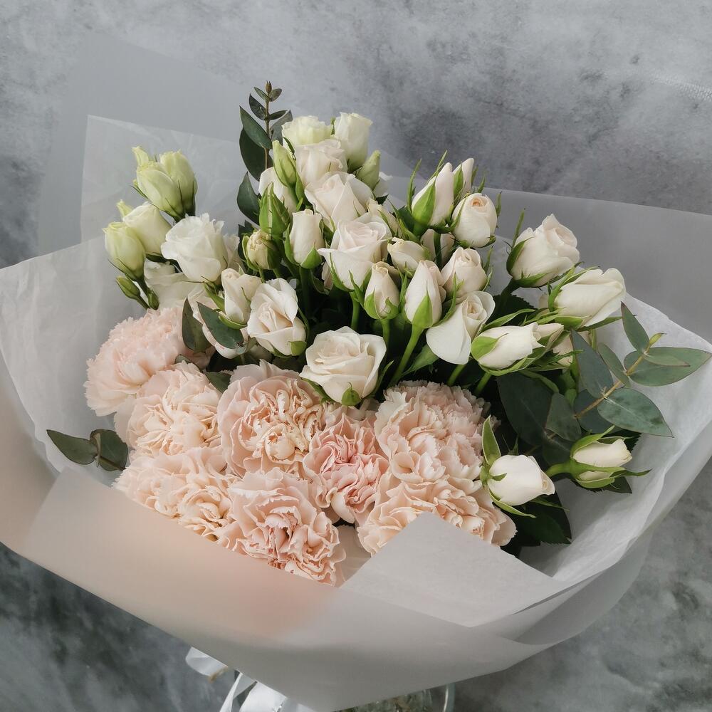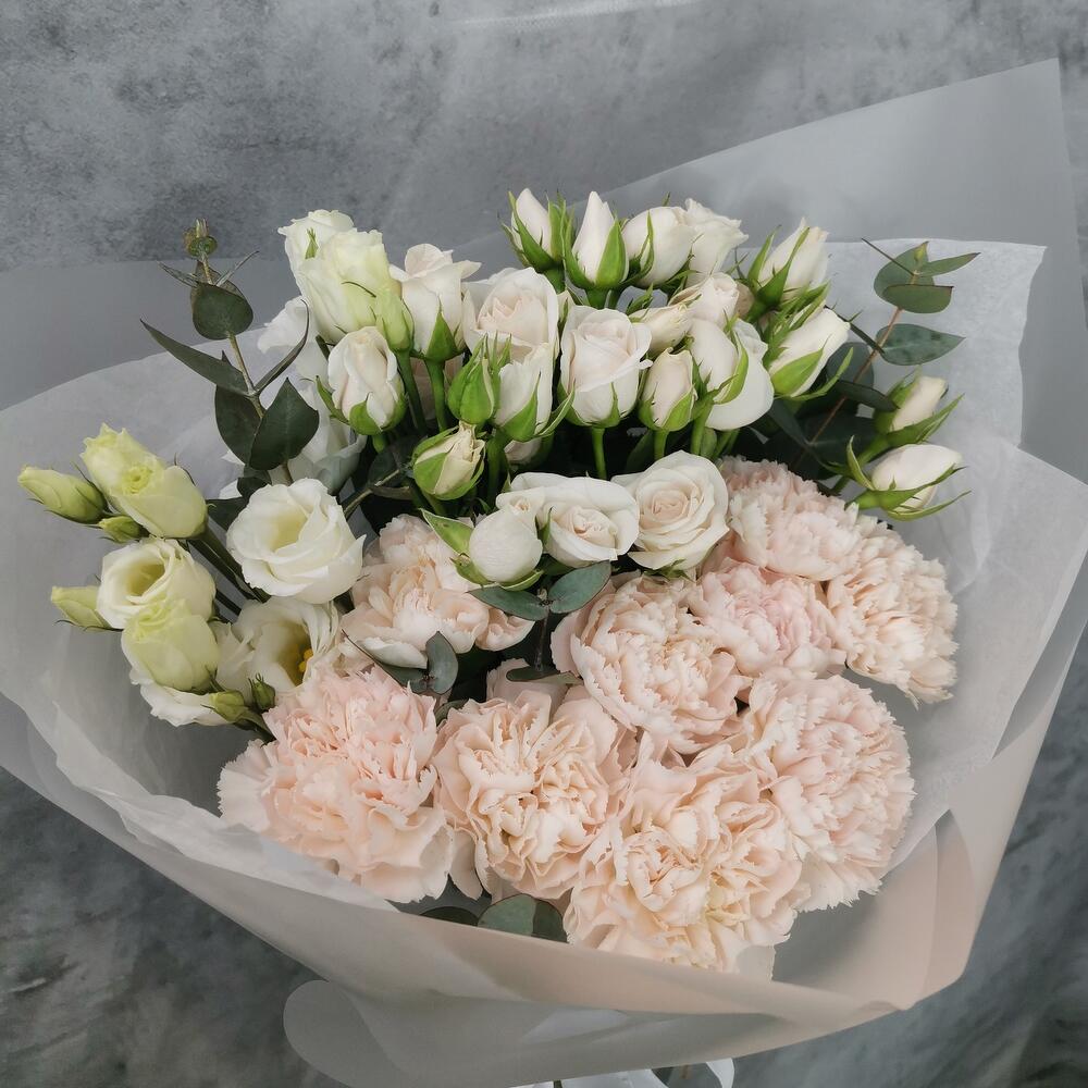 Гвоздики, Кустовые розы, Лизиантусы, Пионовидные розы, Розы
