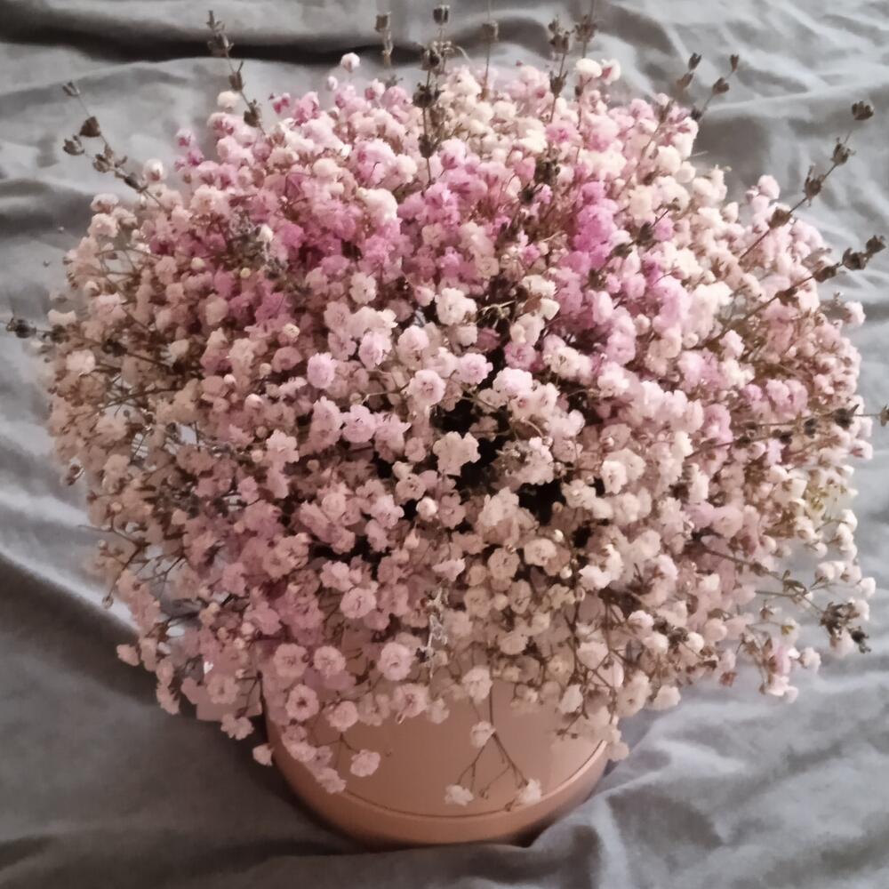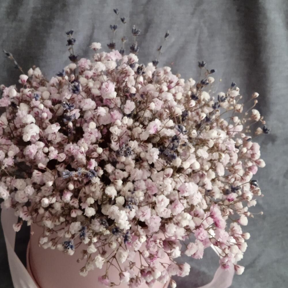 Гипсофила – 25 шт.Лаванда – 35 шт.Шляпная коробка – 1 шт.Подарочный пакет – 1 шт.